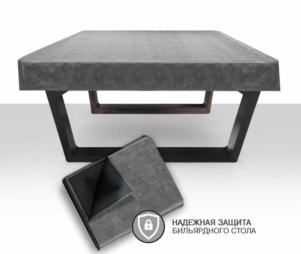 Чехол для бильярдных столов из плотной экокожи высокого качества обеспечивает надежную защиту от пыли, влаги, солнечного света и случайных царапин в перерывах между играми. Благодаря этому чехлу сукно не выгорает на солнце, и необходимость частой чистки поверхности стола от пыли значительно уменьшается. Это позволяет сукну сохранять свои свойства на более длительный срок.