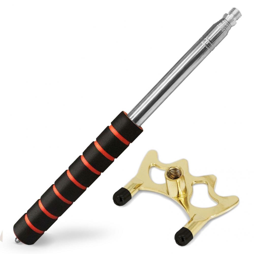 Использование древка позволяет делать удары кием по далеко стоящему шару быстро, удобно и эффективно. С помощью древка с насадкой можно сыграть любой шар на бильярдном столе, в какой бы точке игрового поля он не находился. Телескопическая рукоятка древка позволяет изменять длину устройства одним движением руки в диапазоне от 33,5 см до 152 см, в комплекте с инструментом идет металлическая насадка - высокий мост на резьбе. Универсальная резьба позволяет использовать любые другие насадки - низкий мост, крест, паук и тд.