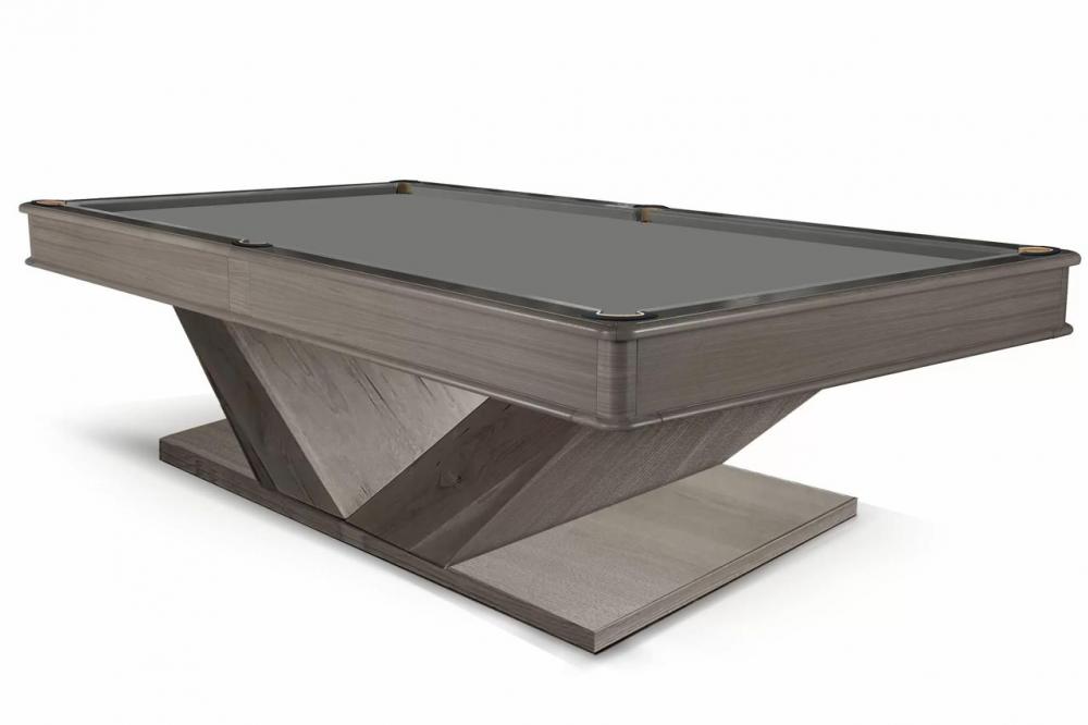 Бильярд Techno – один из самых ярких представителей столов современной стилистики. Композиция стола строится на четком ритме прямых линий, плоскостей и граней. Выразительный силуэт V-образных ног задает характер этому столу и добавляет визуальной легкости конструкции.