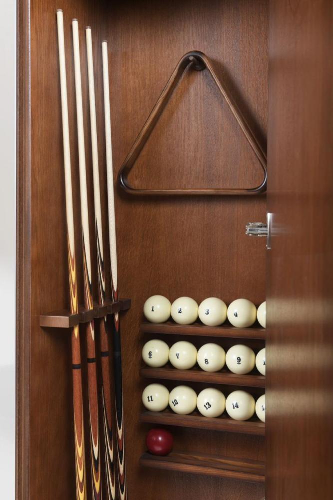 Киевница «Гроссмейстер» имеет форму пенала. Модель предназначена для размещения четырех киев, конструкцией предусмотрены полочки для хранения шаров и подвес для треугольника. Киевница станет удобным и многофункциональным украшением интерьера респектабельной бильярдной комнаты.