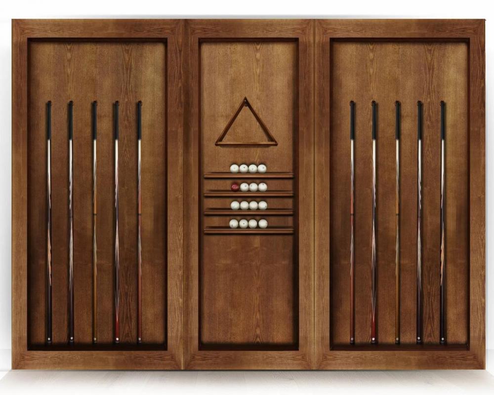 Киевница состоит из 3 частей и рассчитана для хранения 10 киев. Оснащена специальными полочками для бильярдных шаров и имеет удобный подвес, который обеспечивает легкий доступ к треугольнику для расстановки шаров. Данная киевница позволяет держать все необходимое оборудование в одном месте.