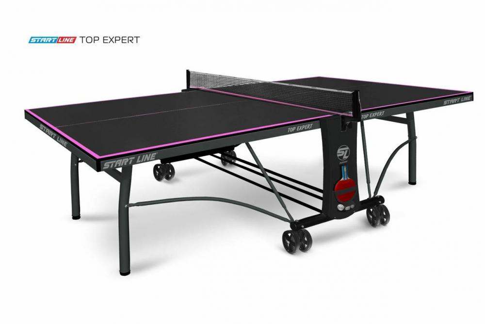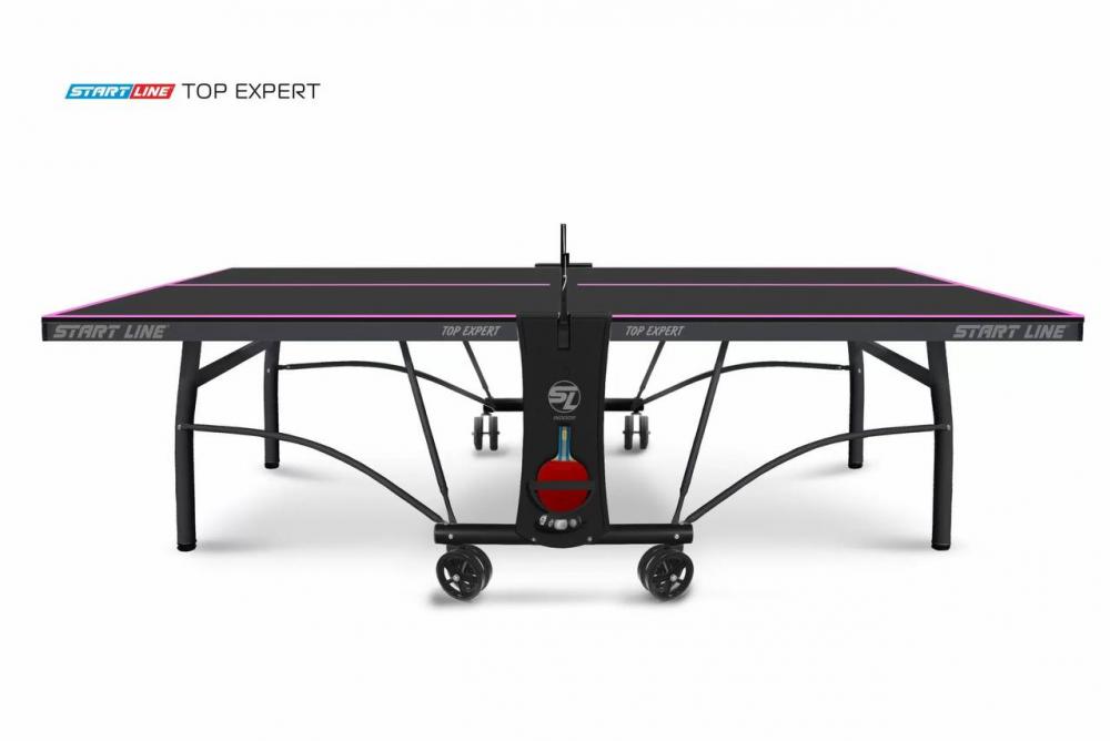 Современные методы построения теннисного стола, позволили усовершенствовать дизайн. Обновленная модель TOP Expert Black отличается уникальным сочетанием стильного черного цвета столешницы и контрастной фиолетовой разметки.