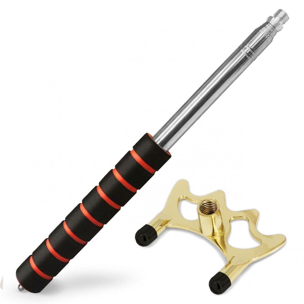 Использование древка позволяет делать удары кием по далеко стоящему шару быстро, удобно и эффективно. С помощью древка с насадкой можно сыграть любой шар на бильярдном столе, в какой бы точке игрового поля он не находился. Телескопическая рукоятка древка позволяет изменять длину устройства одним движением руки в диапазоне от 33,5 см до 152 см, в комплекте с инструментом идет металлическая насадка - высокий мост на резьбе. Универсальная резьба позволяет использовать любые другие насадки - низкий мост, крест, паук и тд.